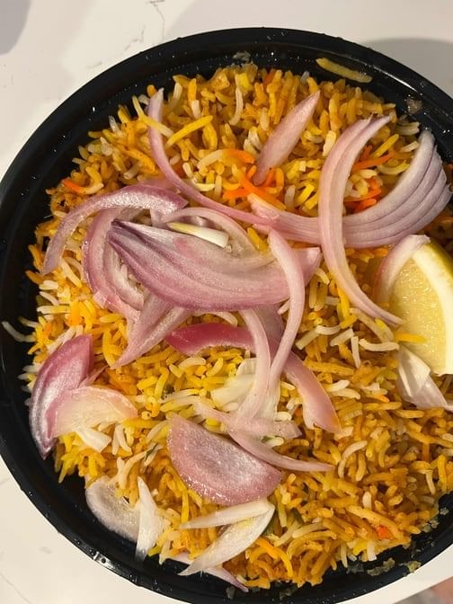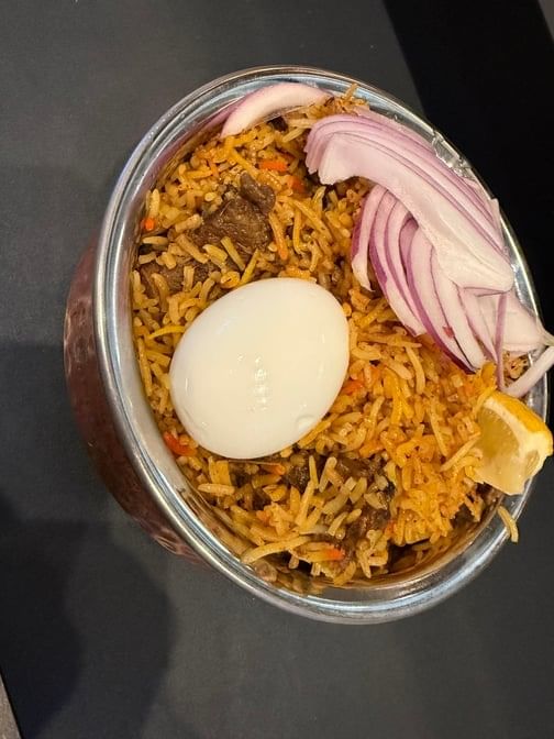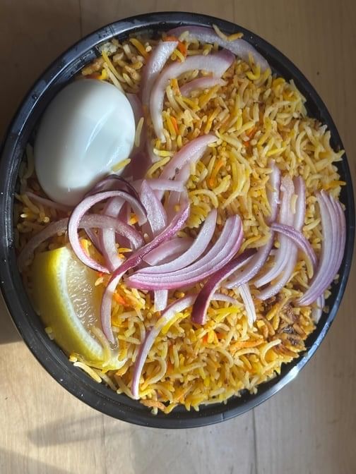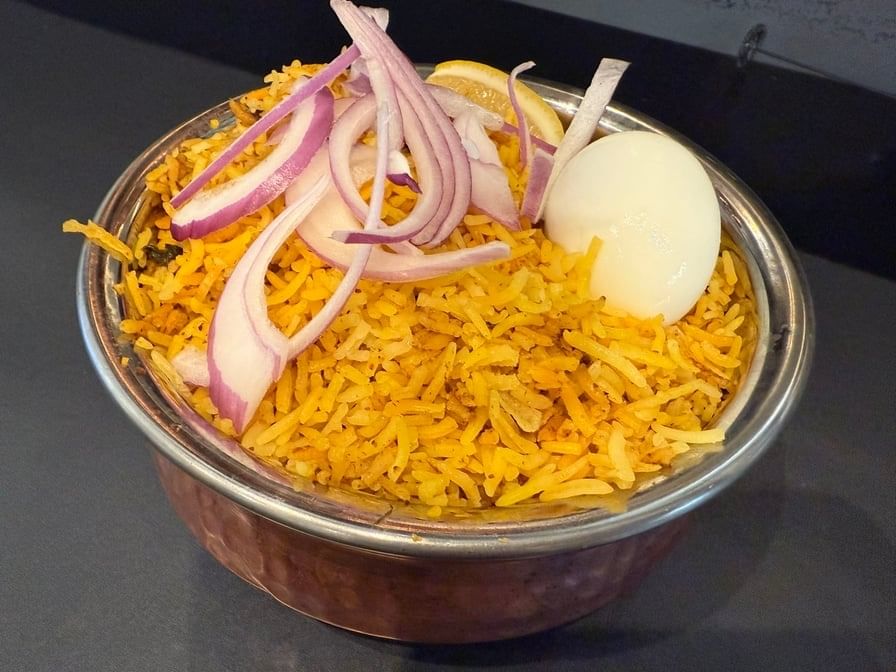 Biryani rice served over Boiled eggs mixed with a house made special sauce.