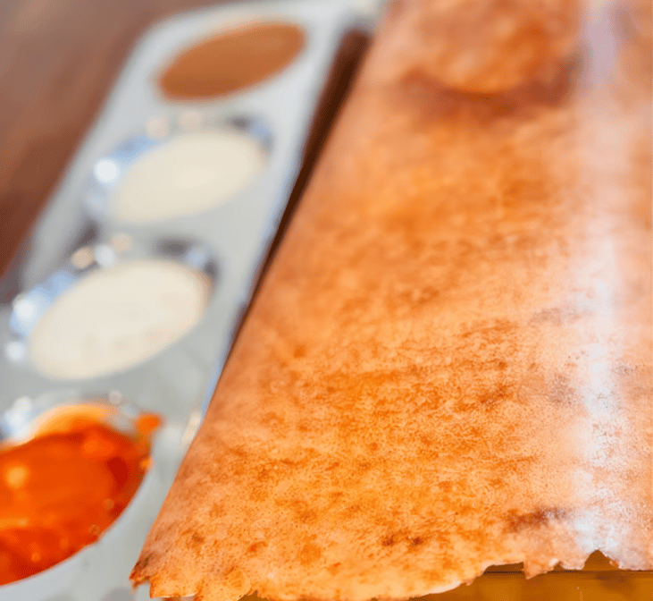 Benne Dosa is a slightly thicker and smaller version of regular Dosa which is crispy outside and soft inside and soft inside topped with lots of butter.