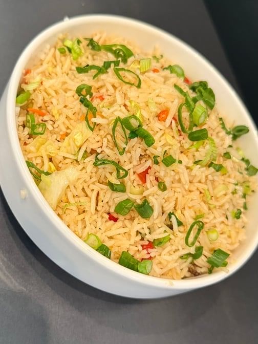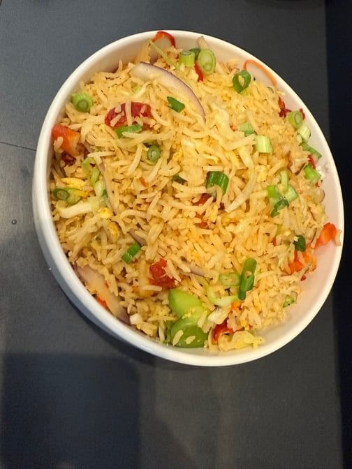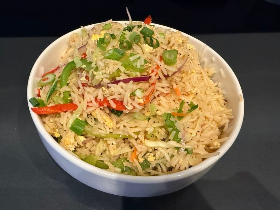 Indo - Chinese style fried rice tossed with vegetables and egg.
