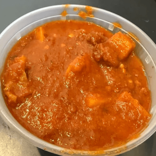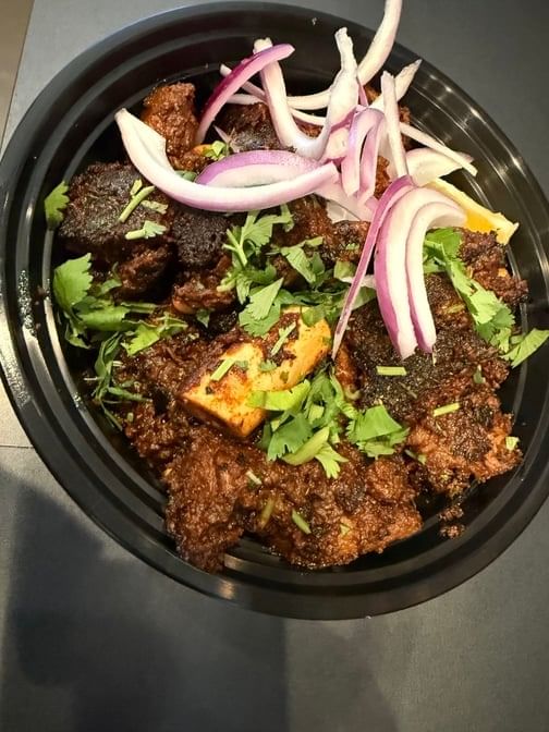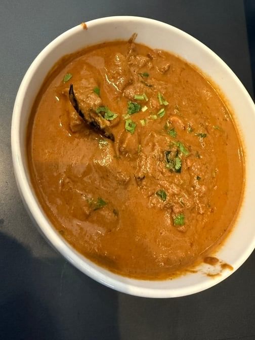 Lamb cooked in rich tangy gravy with curry leaves, potatoes and coconut milk.