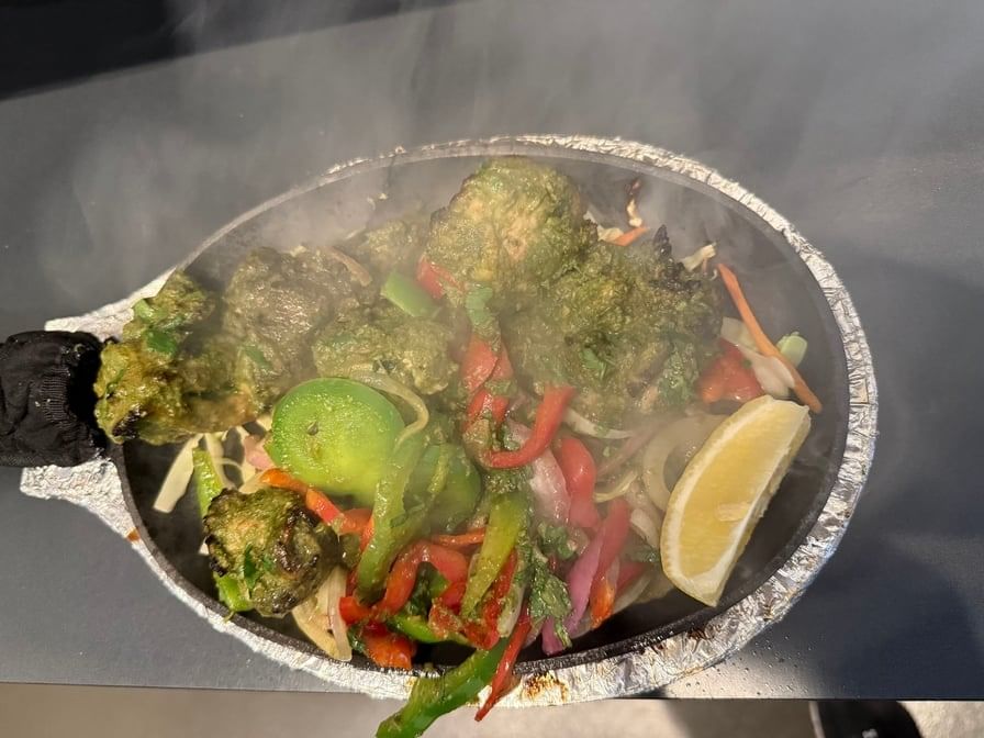Chicken thigh meat marinated with mint flavored sauce and cooked in a Tandoori Clay Oven.
