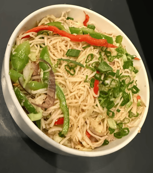 Noodles tossed with shredded chicken and assortment of shredded vegetables and savory sauces.