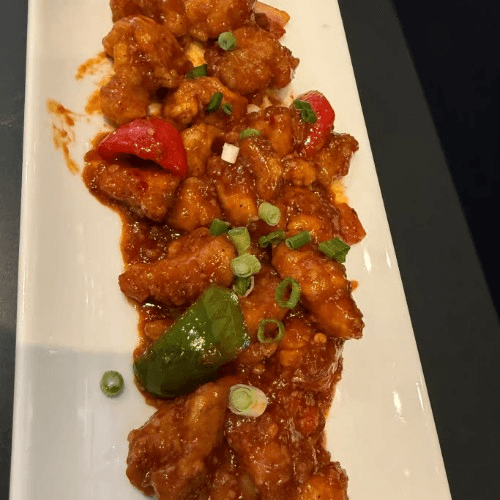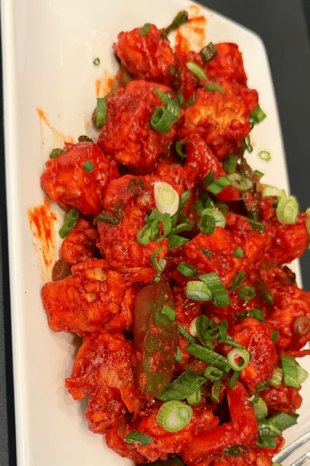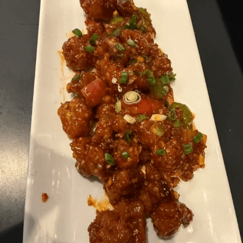 Batter fried Indian Cottage Cheese tossed in Manchurian sauce.