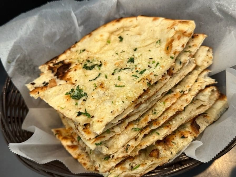 A traditional Indian flatbread stuffed with cheese, baked in Tandoori oven and finished with butter.