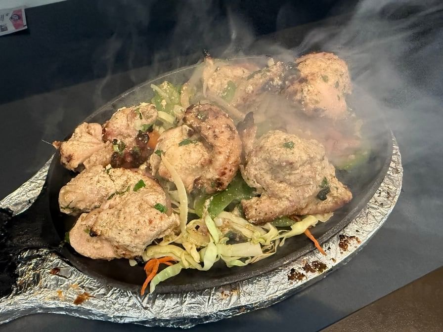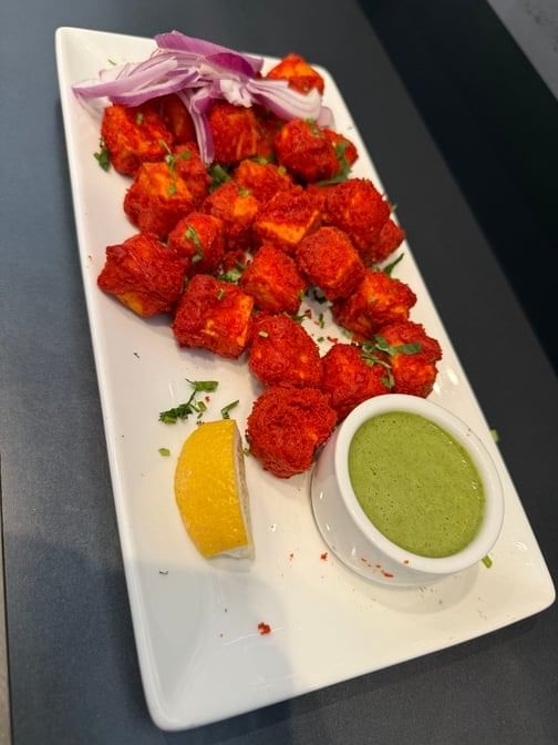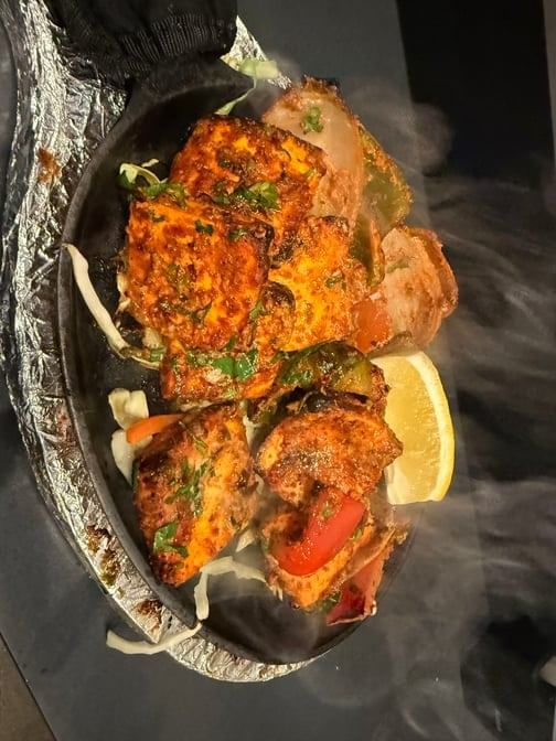Chunks of marinated Paneer grilled in a Tandoori Clay Oven.