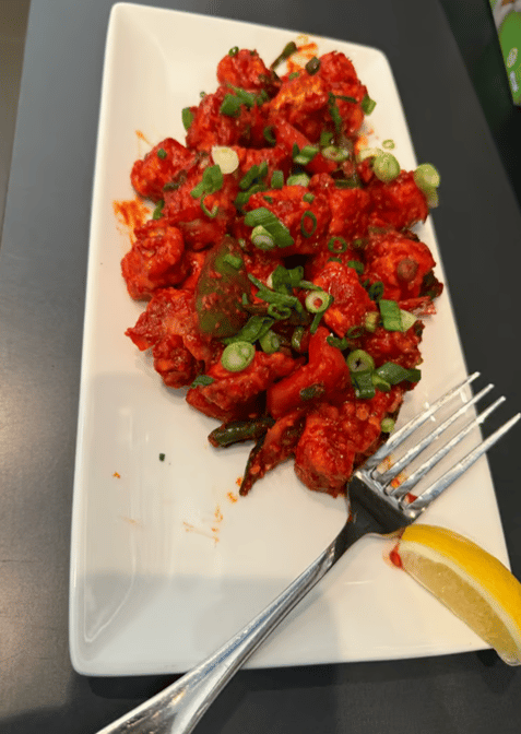 Batter Fried Chana (Garbanzo Beans) tossed with Manchurian sauce.