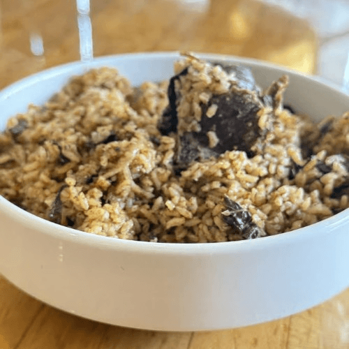Shrimp typically cooked in basmati rice with aromatic spices and herbs.
