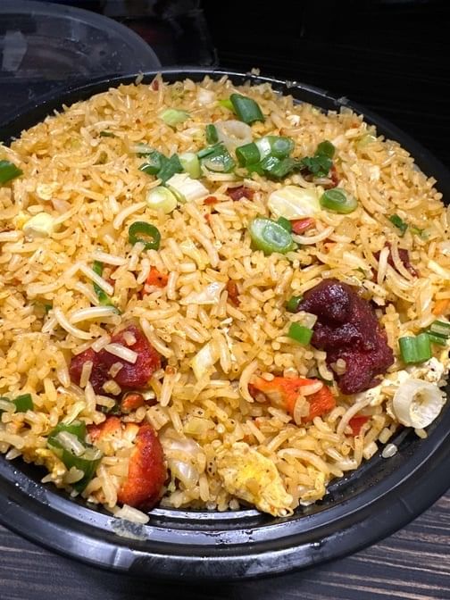 Indo- Chinese style fried rice tossed with vegetables and chicken of 7 Spices special sauce.