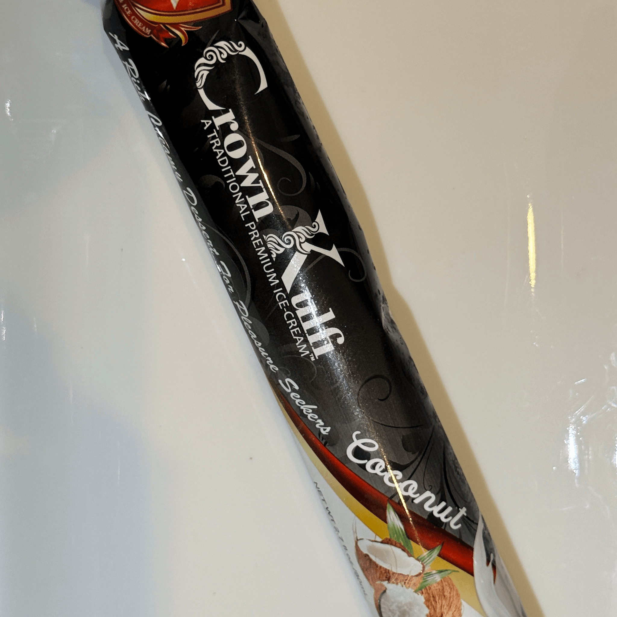 Kulfi ice cream made with coconut, a traditional Indian dessert typically enriched with nuts like pistachios and almonds.