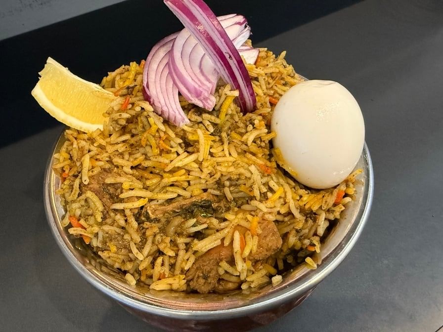 A goat biryani specialty from the Dindigul region of Tamil Nadu. Made with seeraga samba rice.